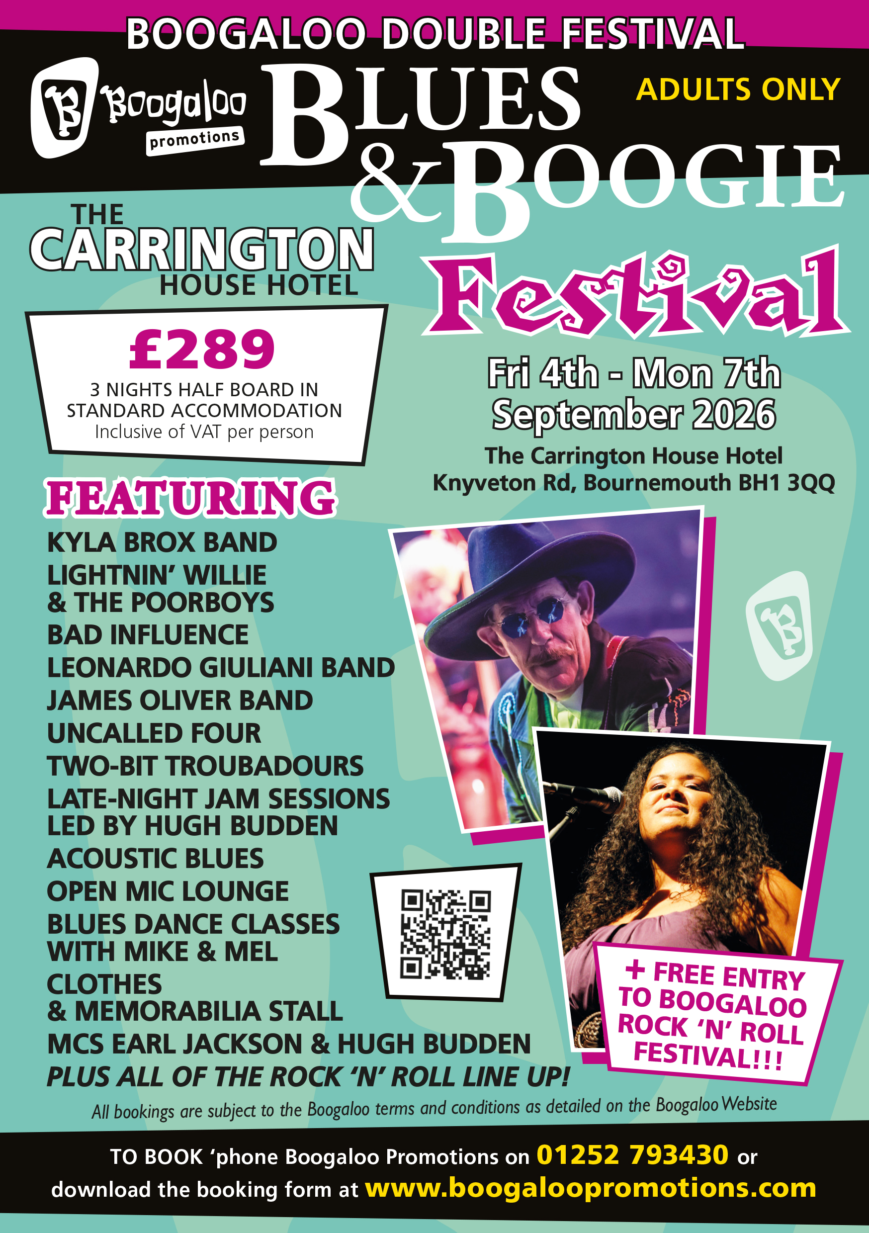 Includes BOTH the Blues & Boogie Festival AND entry to the Rock 'n' Roll festival FREE of charge!